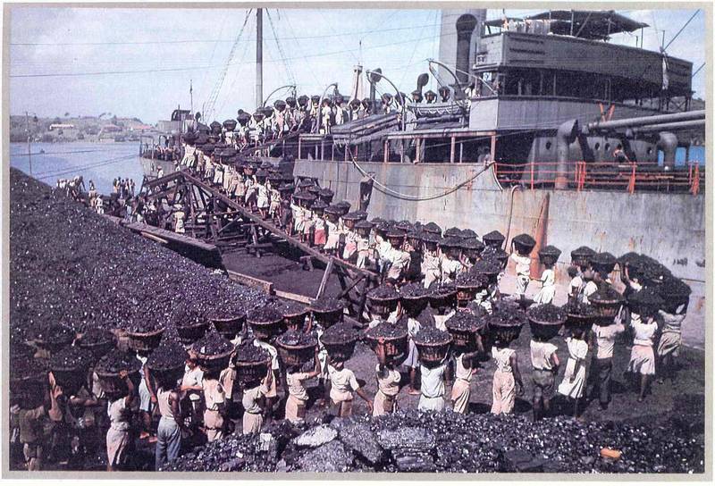 Not entirely sure of the provenance of this picture but it is believed to have been taken in Calcutta in the 1940s. It is such a remarkable picture that it is worth publishing. We wonder how long it took to bunker this ship?